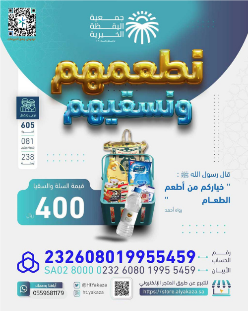 ساهم في مشروع #نطعمهم_ونسقيهم للأيتام والأرامل والفقراء👥 لتوفير السلال الغذائية وسقيا المياة الشهرية للأسر في منازلهم